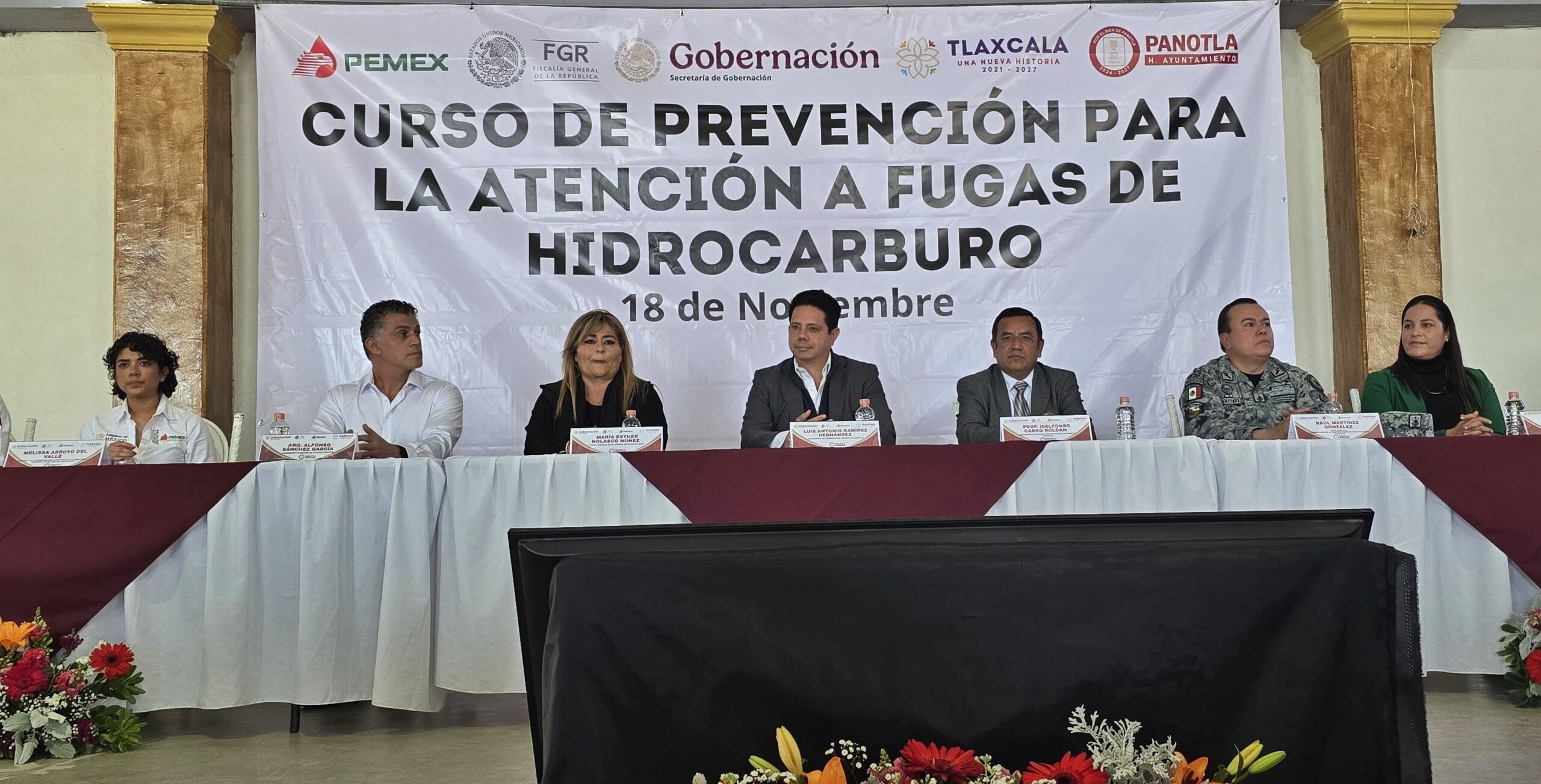 El evento fue presidido por el Secretario de Gobierno del Estado de Tlaxcala, Luis Antonio Ramírez Hernández, y contó con la distinguida participación de la Delegada de la Fiscalía General de la República en Tlaxcala, Dra. María Esther Nolasco Núñez, quienes destacaron la importancia de la capacitación continua para enfrentar de manera responsable y efectiva los incidentes relacionados con tomas clandestinas y fugas de combustible.