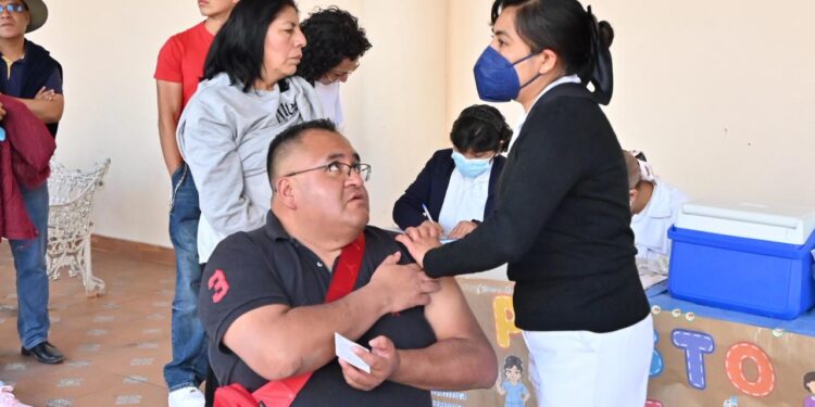 Autoridades de salud informaron que en Chiautempan se aplican 50 dosis diarias de la vacuna contra el sarampión, en un horario de 9:00 a 17:00 horas, en un módulo instalado en el Mercado Hidalgo.